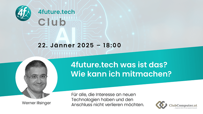 Unser erstes 4future.tech club Meeting soll Euch Orientierung geben. Was ist der 4future.tech Club - was habe ich davon? Wie kann ich Ideen einbringen oder mitarbeiten.