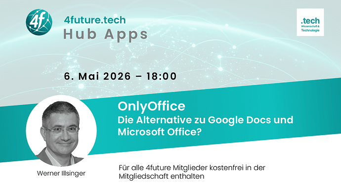 In diesem Hup Apps zeigen wir im Mai praxisnah, wie Zusammenarbeit ohne Google Docs oder Microsoft Office / 365 funktionieren kann: Mit OnlyOffice und 4future Drive bearbeiten mehrere Teilnehmer gleichzeitig ein Dokument, kommentieren, versionieren und teilen Inhalte – live und interaktiv, Dokumentenformat-kompatibel.