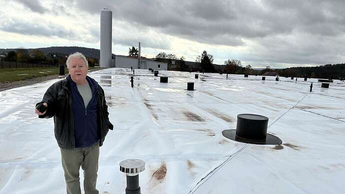 Auf dem Dach befinden sich 855 Solarmodule, welche die Sonnenenergie in Wärme umwandeln. Zusätzlich gibt es einen Holzabfall-Brenner als Backup-Lösung.