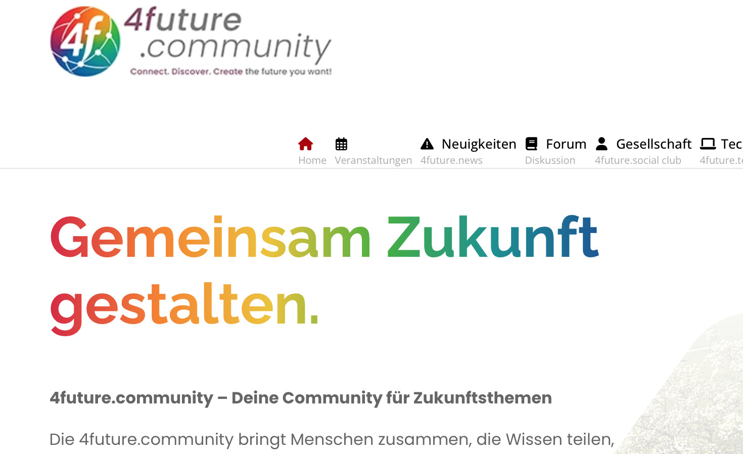 Wir habe eine Buttonleiste eingebaut, mit der man nun direkt zu den Terminen der Veranstaltungen, den Blogbeiträgen (4future.news) oder dem Forum springen kann.