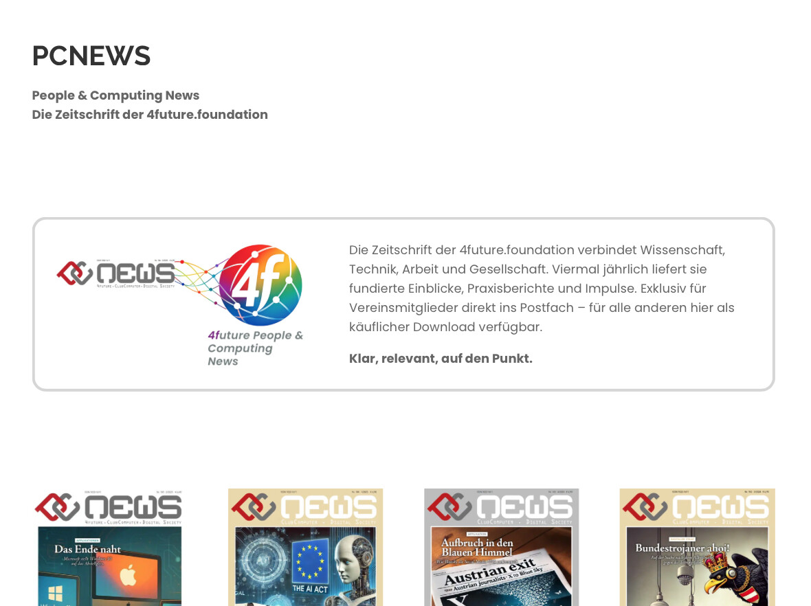 Im Abschnitt für die PCNEWS (4future.news) haben wir die Reihenfolge der angezeigten Ausgaben geändert. Die aktuellste Ausgabe befindet sich nun an erster Stelle.