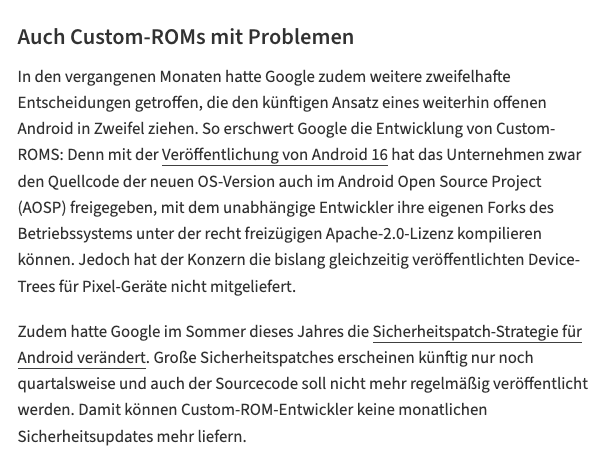 GrapheneOS hat auf verschiedene Security Probleme bei e/os hingewiesen. Hier das vollständige Posting auf LinkedIn: