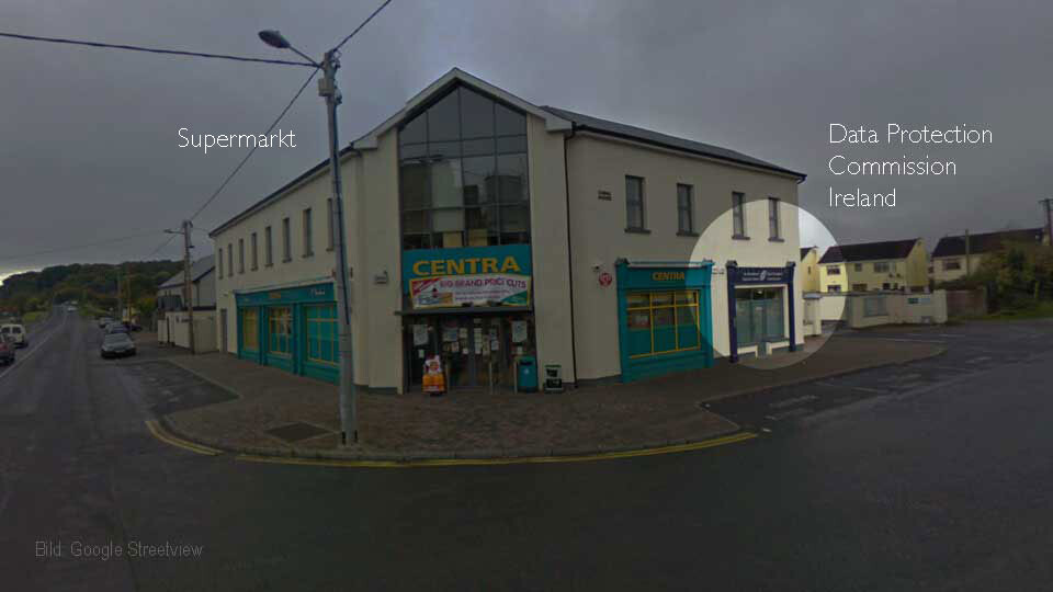Es zeigte die irische Datenschtzbehörde, die für die Regulierung von Facebook, Google, Microsoft und Co in der EU zuständig ist, weil allesamt dort ihren Europasitz (aus Steuergründen) haben. Also dieses kleine Kabuff ist dafür da alle Big Techs im Zaum zu halten.