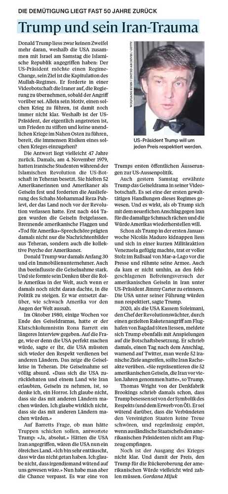 … einen Raufbold einzustufen. So wie es in der Schulklasse (Amerika) einen oder zwei Raufbolde gibt welche die anderen, manchmal stärkeren, Mitschüler zu unterdrücken versuchen (sich aber vorerst nur an die Schwächeren trauen) - genauso benimmt sich Trump. Nur eben nicht mit seiner Fäusten sondern er benutzt das amerikanische Militär.