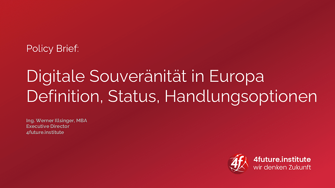 Ein Policy Brief** ist ein kompaktes, verständlich geschriebenes Analyse- und Empfehlungspapier zu einem aktuellen gesellschaftlichen, technologischen oder wirtschaftlichen Thema. Er richtet sich an Entscheidungsträger*innen, Fachleute und eine interessierte Öffentlichkeit. Hier zum Thema “Digitale Souveränität”