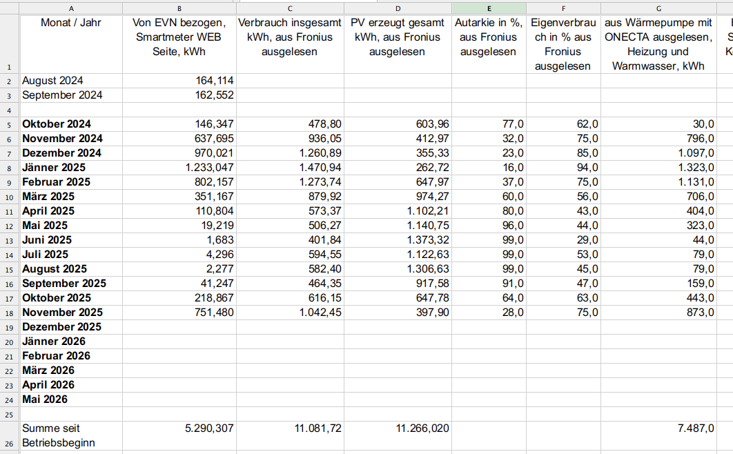 Zählerständen der Versorgungsunternehmen kann man schon trauen. Detto auch was Fronius und Daikin zur Verfügung stellt.